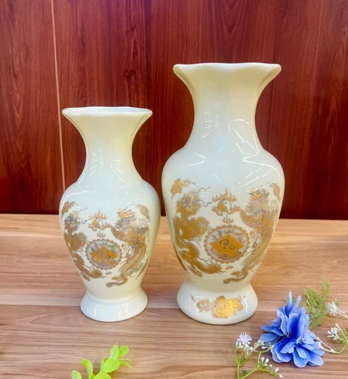 Lọ Hoa Dáng Lộc Bình Men Bóng Trắng Vẽ Tay Mai Hạc - Đào Hạc