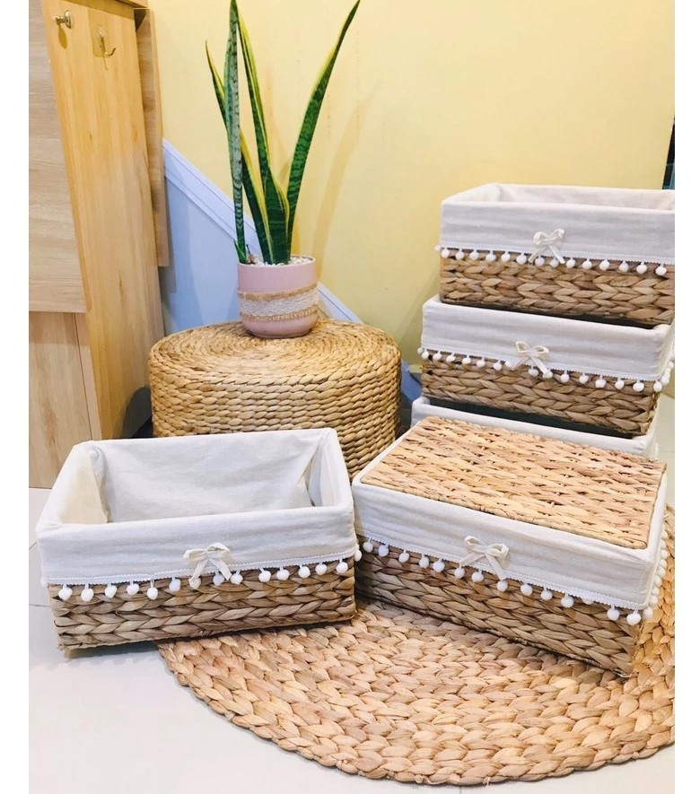 Giỏ lục bình chữ Nhật đựng đồ đa năng có tay cầm hàng thủ công Mỹ nghệ