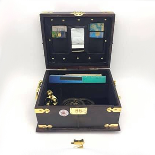 Khóa chốt an toàn, tay xách 2 bên hông, với các phụ kiện góc bằng đồng lá nguyên chất, thiết kế với kiểu dáng mới rất sang trọng và đẹp mắt,với phụ kiện khóa an toàn, bên trong dán vải nhung đen hoặc nhung đỏ cao cấp, mặt trong hộp được thiết với lớp da thuộc và được chi thành các ngăn dùng để cá vật dụng như CMT, thẻ ngân
