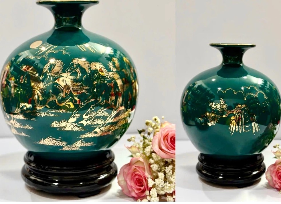 - Bình hút lộc vẽ vàng 24k phủ men bóng cao cấp làm toát lên sự sang trọng đẳng cấp trong không gian phòng của gia chủ.